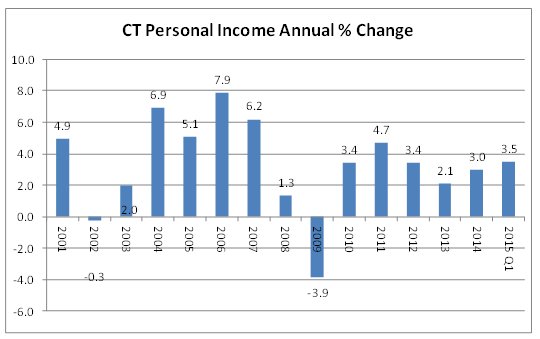 first quarter of 2015, personal income in Connecticut grew at a rate of 3.5