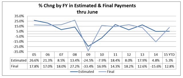 • Through June of Fiscal Year 2015, the year-to-date withholding portion of