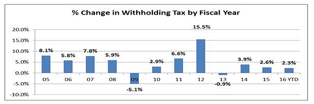 last fiscal year. In October year-to-date withholding was up 1.4 percent. New